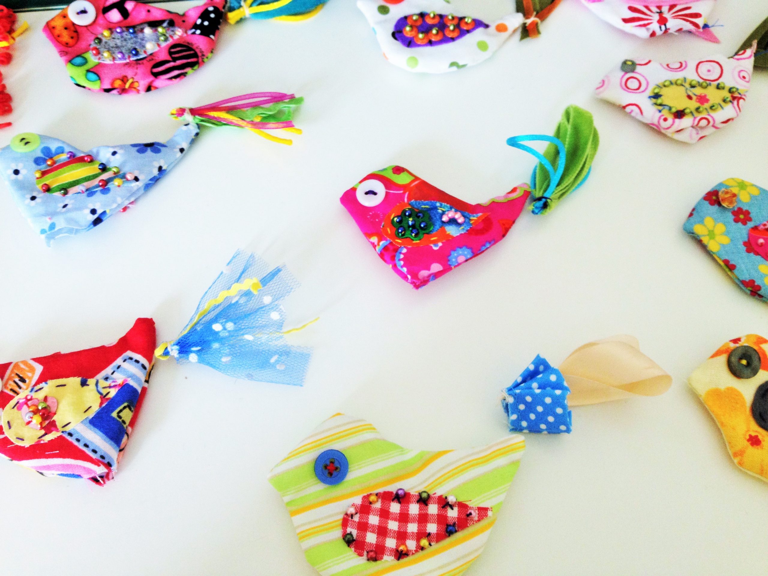 Bien!!  Una vez que seleccionas unos pedazitos de tela, para las alitas usa fieltro de color, nos ponemos manos a la obra… se