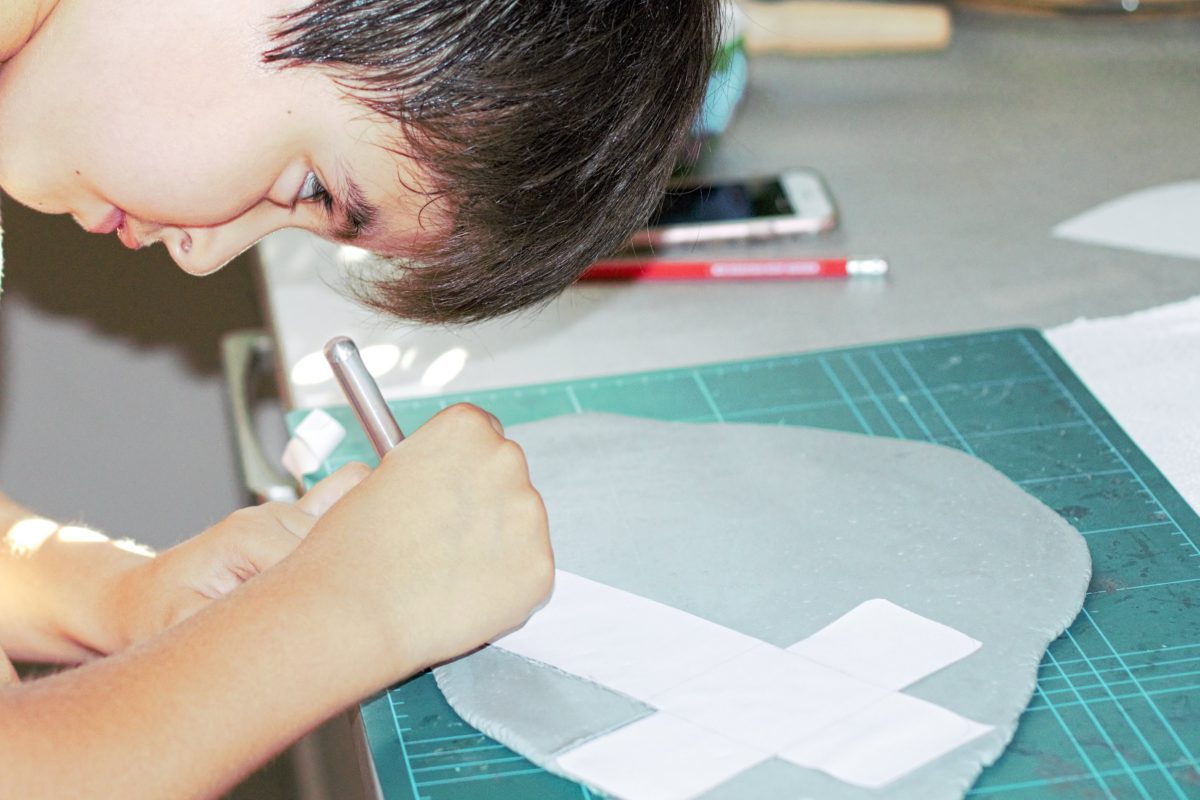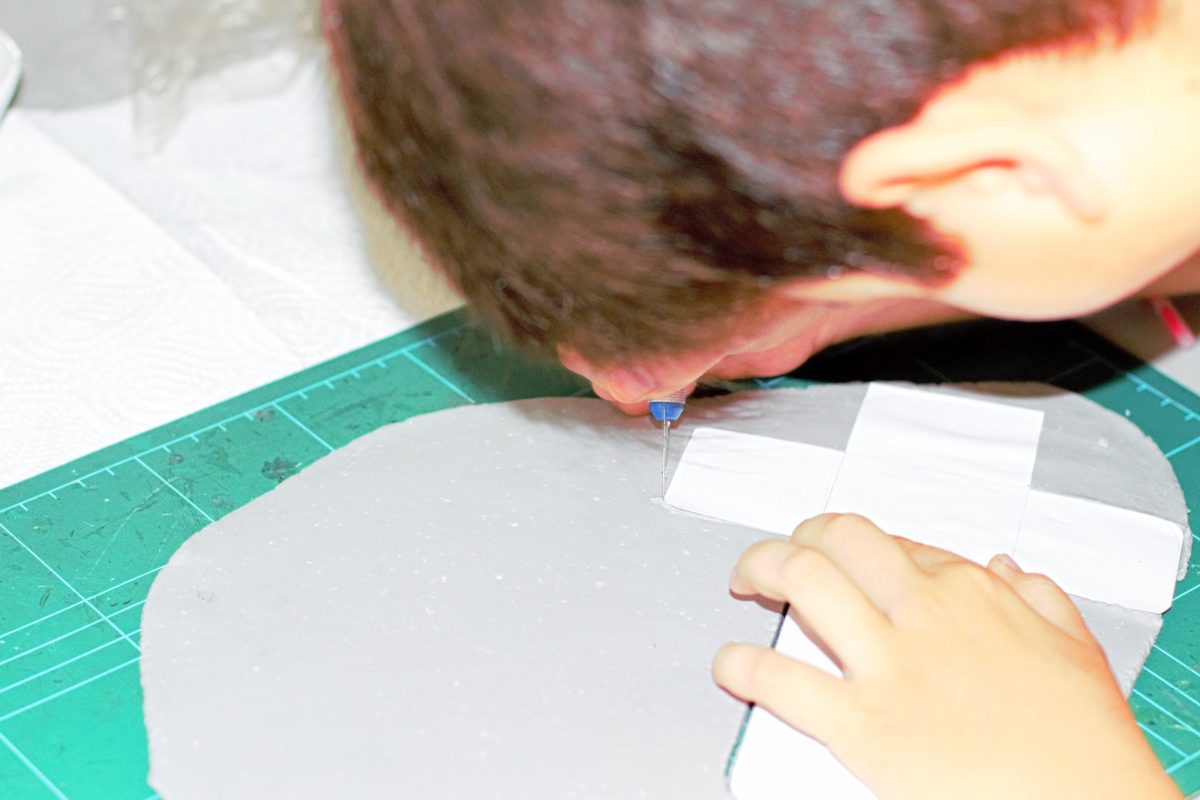 3. Es tiempo de marcar aquí algunas lineas en las manos, o los orificios para los insciensos y las formas que se te ocurran…