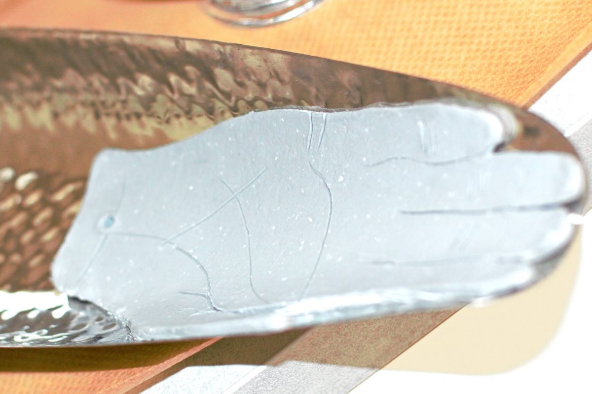 2. Coloca el bol boca abajo sobre la arcilla, apretando un poco para marcar una redonda con el contorno, esto para los bowls y para las manitas… pues como molde utiliza tu mano o la de tus hij@s. Corta con un cuchillo la arcilla que sobra y separa poco a poco la redonda que has creado del papel vegetal.