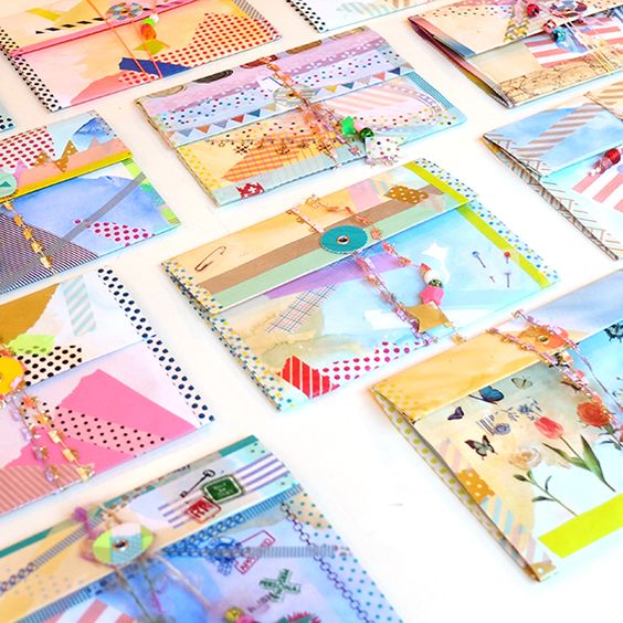 El sobre es el preámbulo, tiene crear expectación e ilusión. Así que debe ser precioso y no un simple contenedor. No es necesario que sea un sobre especial, puedes utilizar un sobre común y después decorarlo. También puedes crearlo usando una plantilla y un papel bonito. Lo más importante que debes tener en cuenta con respecto al sobre es que debe caber todo.
